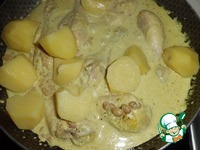 Курочка в сливках получается невероятно сочной, картошечка успевает "принять" в себя вкус и аромат остальных продуктов. Обычный, привычный, но очень вкусный ужин))) |