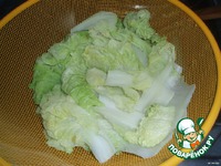 У капусты удалить самые жесткие части, листья уложить в кастрюлю, залить кипятком, варить 1–2 мин., вынуть, остудить и обсушить. |
