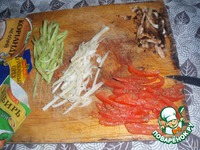 Огурец очистить, нарезать соломкой. Нарезать помидор. |