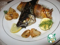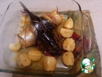 Укладываем рыбу в форму для запекания и смазываем маринадом. Приставляем голову. Ставим в разогретую до 180 градусов духовку. Печься она будет минут 30-40 |