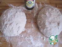 Далее, используя муку, разделим тесто пополам, сформируем два колобка, накроем и оставим отдохнуть на 10-ть минут. |