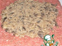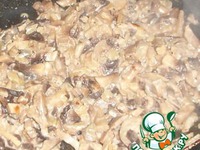Лук мелко порезать, поджарить на сковородке. Грибы вымыть, порезать, добавить к луку, обжарить вместе до испарения жидкости, посолить, добавить сметану, потушить еще минут 5, слегка остудить. |