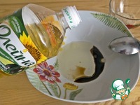 В большой миске или сразу в большом салатнике, смешиваем бальзамический уксус (или винный), оливковое масло, сахар и соль. У меня подсолнечное масло с добавлением оливкового от ТМ "Олейна". |