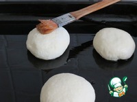 Переложить колобки на, предварительно смазанный маслом противень. взбить вилкой белок. при помощи кисточки, смазать белком колобки. |