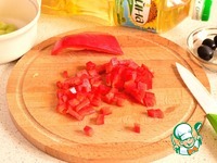 Оливки нарезать произвольно, но не крупно. |