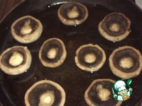 Тем временем разогреваем духовку, подготавливаем шляпки грибов и выкладываем их на смазанный маслом противень. |