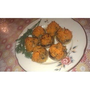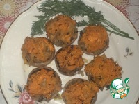Снимаем с огня сковороду и выкладываем содержимое в шляпки: грибы с луком прикрываем морковью. И ставим в хорошо разогретую духовку на 10 мин. |