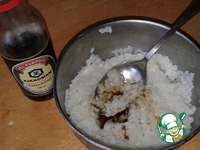 В рис добавить соевый соус "Киккоман" и перемешать |