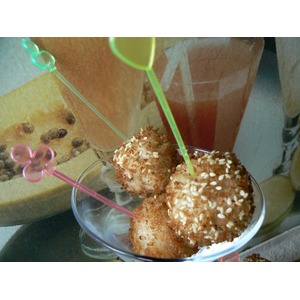 Каждый шарик обвалять в панировке и обжарить в масле до золотистого цвета |