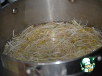 Заливаем кипятком и ставим варить. С момента закипания отсчитываем 45 секунд и сразу же сливаем. Проростки должны быть альденте! |
