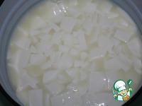 Разрезать сгусток на кубики со стороной 2-3 см |