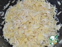 Картофель натереть на крупной тёрке, полить соком лимона. Дать немного постоять и тщательно отжать. |