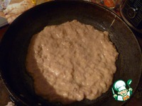Сковороду нагреть и обильно смазать растительным маслом. Выложить 2-3 столовые ложки теста на середину сковороды и разровнять, придавая форму блинчика |