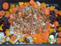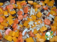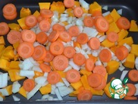 Овощи почистить, помыть и нарезать. Положить подготовленные овощи в большую, огнеупорную форму. |