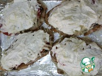 Картошечку смазываем майонезом ( можно и сметаной, но думаю все-таки с майонезом вкуснее ). И в духовочку! Ставим 180-190 градусов. Минут на 30. |