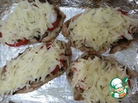 После этого вытаскиваем наш противень и посыпаем сыром "пармезан". Ставим в духовку для подрумянивания . Минут на 10-15. |
