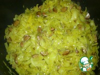 2. Нарезать имбирь и добавить к капусте тушиться. Также добавить соль по вкусу. Тушить минут 20 до полумягкого состояния, периодически помешивая, чтобы капуста не подгорела. |