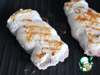 Обжариваем рулетики на сковороде гриль. Этот шаг можно опустить, я делала для презентабельности. |
