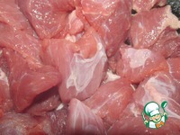 1. Мясо нарезать кусочками ( я брала говядину ), обжарить его до золотистой корочки на оливковом масле. |