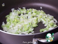 2. Сельдерей порезать мелким кубиком. Добавить к луку и обжаривать еще пару минут. |