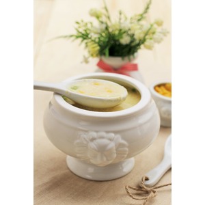 Как только бульон достигает кипения, снять с огня. Медленно вылить взбитые яйца в суп, помешивая венчиком по кругу, чтобы создать яичные ленточки. |