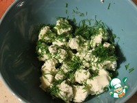 Для начинки, сыр раскрошить руками и добавить к нему мелко рубленный укроп. Перемешать. |