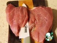 У меня небольшой кусочек свинины. Разрезать его пополам, не дорезая до конца. |