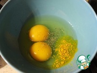 Для омлета: яйца смешать с молоком, солью, перцем и куркумой. Слегка взбить венчиком и вылить в сковороду с 1 ст. л. растительного масла и накрыть крышкой. Пожарить ровный яичный блинчик. |