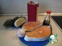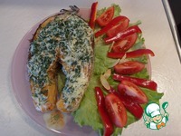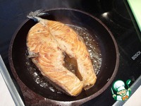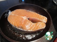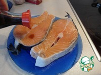 Стейки семги «поливаем» соусом с обеих сторон, можно немного посолить, но это уже кто как любит. |