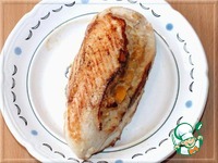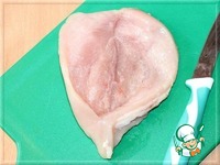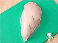 Накрываем и закрепляем края филе зубочистками. Фаршированные грудки солим, перчим с обеих сторон. Когда переворачиваете на сковороде грудку, зубочистки снимаете. |