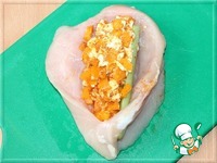 Кладем в карман каждой грудки по кусочку сельдерея. |