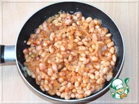 Выкладываем в сковороду фасоль, добавляем 1 ст. л. томатной пасты, щепотку молотого перца, немного сахара (по желанию), солим и хорошо перемешиваем. |