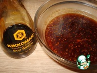 Выложим ребрышки в форму, немного посолим (глазурь будет с соевым соусом, добавит солености), посыпаем специями для гриля, сбрызнем оливковым маслом. |