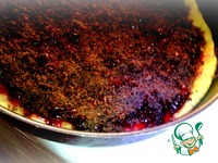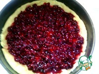 Переворачиваем нашу форму и смазываем растительным маслом. Кладем на дно формы тесто приминая кроя, что бы начинка потом не вылилась. Выкладываем вишню на тесто. |