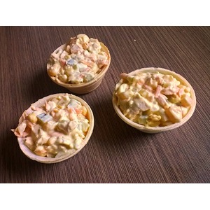 В качестве заправки можно использовать сметанно-горчичный соус, майонез или сырный соус. Подавать в тарталетках. |