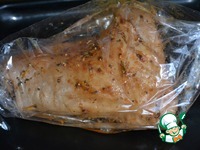 Возвращаемся к рульке. Хорошо промаринованную рульку помещаем в рукав для запекания и ставим в духовку примерно на 2 часа при температуре 190 градусов. |