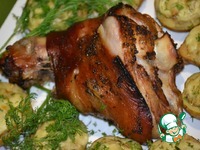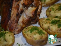 Описание: Достойный семейный ужин, состоящий из запеченной рульки и молодого фаршированного картофеля, вполне подойдет для встречи гостей. Красивый, вкусный и сытный!!! При приготовлении, как основного блюда, так и гарнира, используем соевый соус Kikkoman