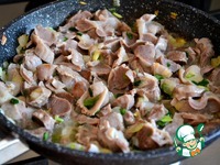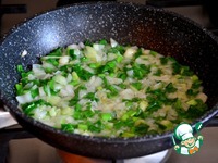 Через некоторое время добавить зеленый лучок, немного прожарить |