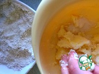 Замесим тесто. Измельчим овсяные хлопья с помощью блендера/кофемолки и смешаем с мукой. В отдельной чашке растираем масло с сахаром. Всыпаем муку и замешиваем тесто в комок. |