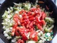 Добавила в овощи 2 мелко порезанных помидора. Перемешала, подсолила, убрала с огня. |