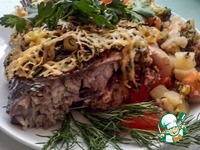 Описание: На самом деле, я не очень люблю рыбу, в которой есть много костей) А вот такой карп мне нравится, мягенький, к тому же уже с гарниром) Да и быстро. И наверное даже это блюдо можно назвать диетическим, если не считать сыр, карп то сам по себе не жирный.