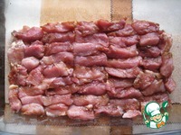 Мясо порезать, залить соусом - маринадом терияки kikkoman, оставить мариноваться на 2 часа. |