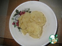 Картошку нарезать тонкими пластинками. Добавить к ней приправу, соль и растительное масло и перемешать, чтобы все ломтики были смазаны. |