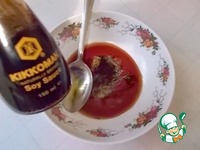 Приготовить маринад: смешать соевый соус ( у меня ТМ "Kikkoman"), 1ст. л. масла, перец черный и сушеный базилик (1ч. л.). |