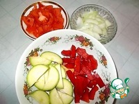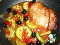 Минут через 5 добавить помидоры и оставшийся маринад. Жарить помешивая до готовности всех овощей (минут 15). |