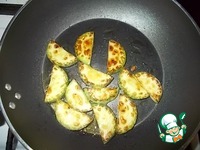 Параллельно на сухой, или смазанной маслом, сковороде обжарить ломтики кабачка с двух сторон. |