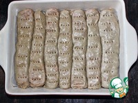 Поначалу сложно работать с таким тестом. Но наловчиться можно быстро. Выкладываем в форму, застеленную бумагой для выпечки. |