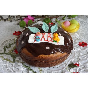 Готовые куличи полить глазурью или посыпать сахарной пудрой и украсить по желанию. Для глазури растопить на водяной бане или в микроволновке шоколад со сливочным маслом, перемешать. |