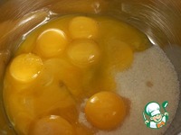 Желтки растереть с сахаром до бела. |