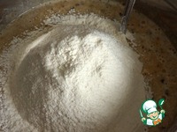 Просеиваем в тесто 250 гр. муки. Перемешиваем. Ставим в теплое место минут на 40-50. |